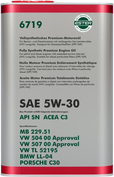 Univerzális prémium szintetikus motorolaj (PAO-t tartalmaz) a VW csoport autóinak modern benzin- és dízelmotorjaihoz (közvetlen befecskendezéssel együtt) turbófeltöltéssel és anélkül, beleértve a pumpa-befecskendezőkkel felszerelteket is (Pumpe-Duse).
