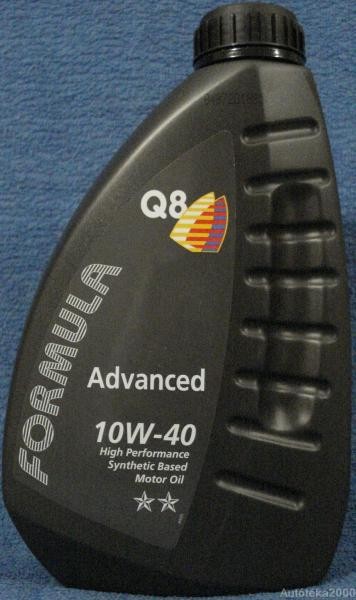 Rész-szintetikus nagy teljesítményû motorolaj egész éves használatra. Alkalmazható modern szívó vagy turbó benzines vagy dízel motorokba, katalizátorral vagy a nélkül. Hidro-synthetic componens összetételének köszönhetõen kíváló hidegindítási tulajdonságokkal és nagyon magas kopásvédelemmel rendelkezik. Széles körben használható a személygépjármûveknél és a kishaszongépjármûveknél egyaránt. A Q8 Formula Advanced magas szintû motorvédelmet, motortisztaságot és hosszú motorélettartamot biztosít benzines és dízel motorok számára. Jóváhagyások és minõsítések: ACEA A3 / B3, API SL / CF, BMW Special Oil, MB 229.1, VW Norm 500.00 / 505.00